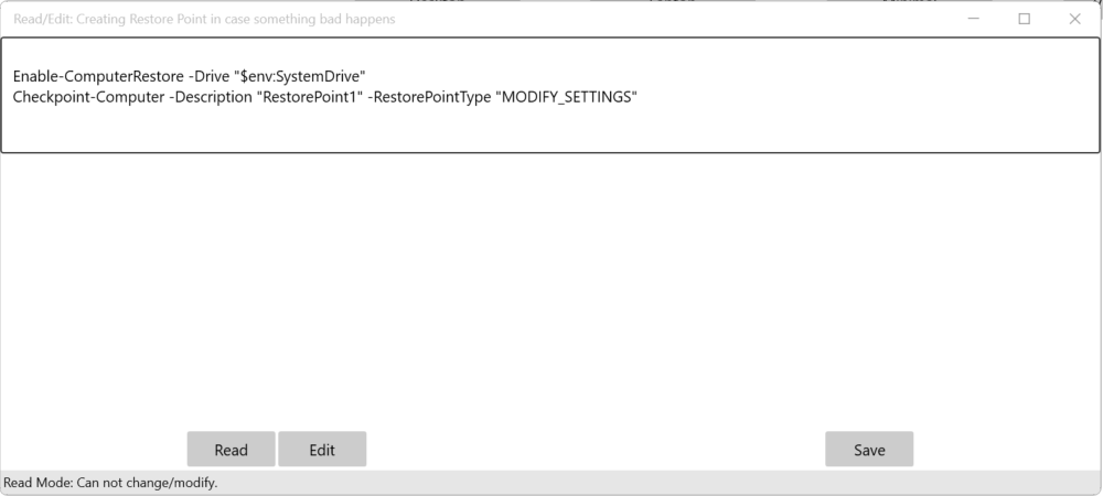 The unique addition I did to it was enable the debloaters to read and edit the script on all options. This enabled the users to learn scripting. I struggled learning programming growing up and wanted to help people learn programming.